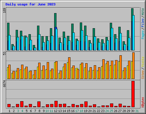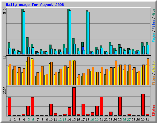 Day | Hits | Files | Pages | Visits | Sites | KBytes | ||||||