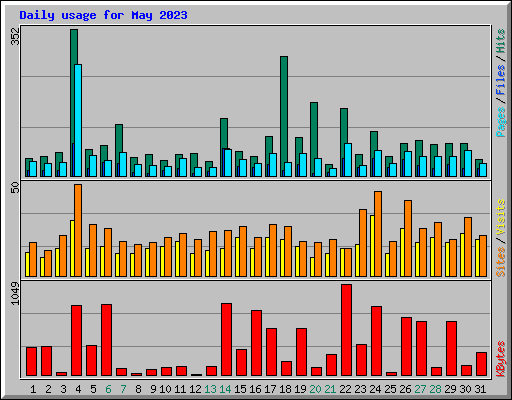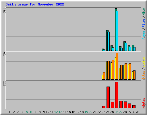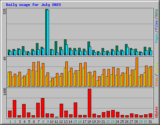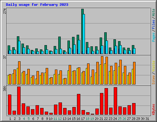 Day | Hits | Files | Pages | Visits | Sites | KBytes | ||||||