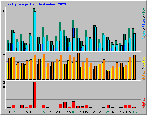 Day | Hits | Files | Pages | Visits | Sites | KBytes | ||||||